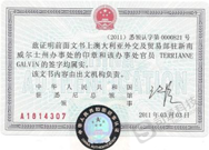 澳洲驻中国大使馆认证: